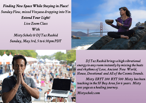 I am so excited to be offering this class with DJ Taz Rashid! Please join us for 90 minutes of music and movement to find space in this time of sheltered connection.